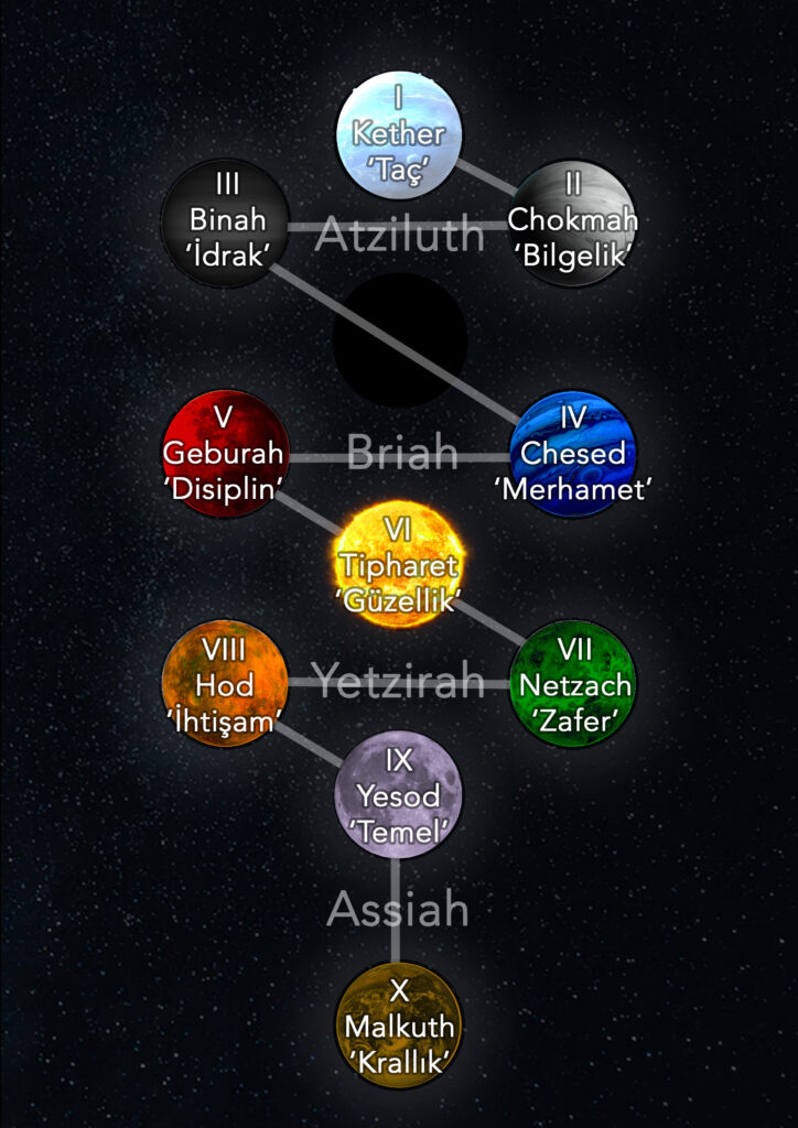 Kether, gücün başlatıcı ilkesi. Ama arketiplerin bile ötesinde. Burada kutupluluk yok, sadece saf potansiyel var.